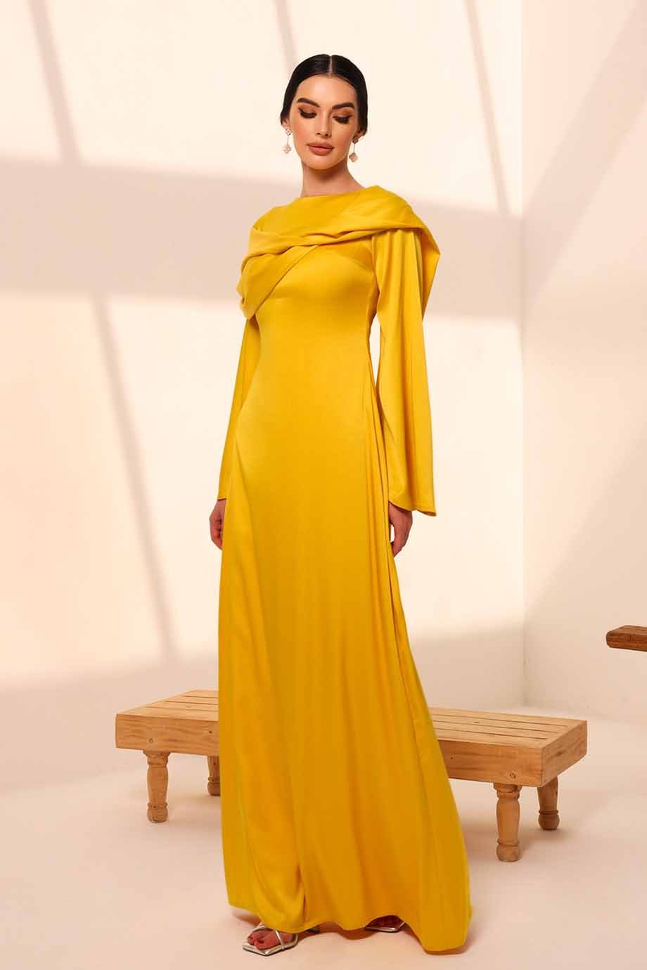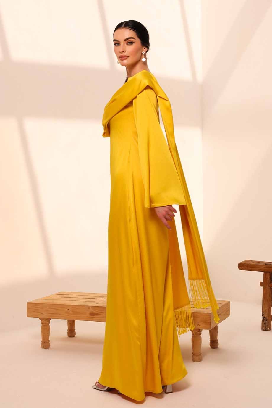 Shawl wrap kaftan in light crepe fabric with beaded tassels.