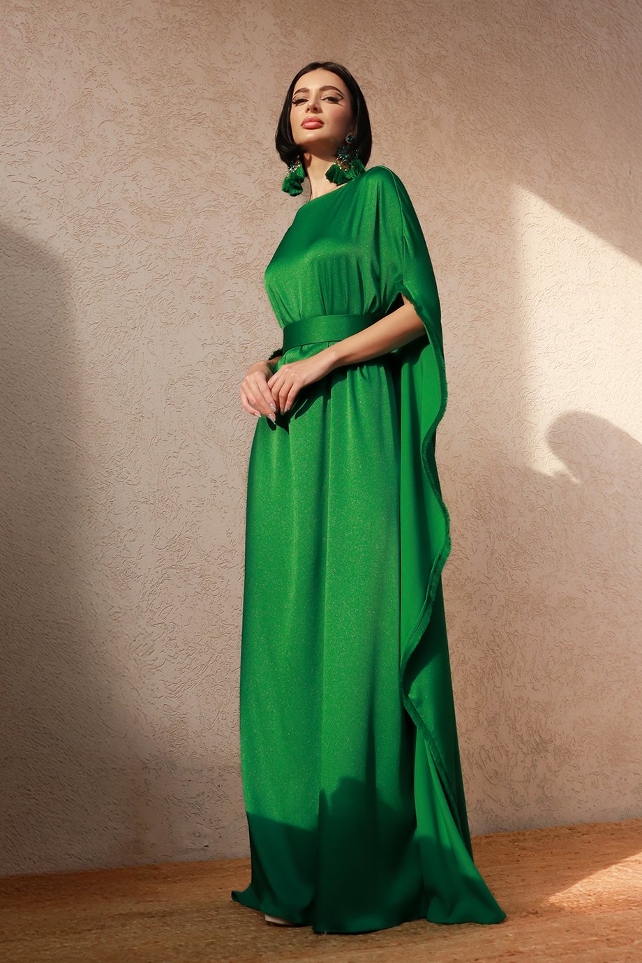 Free-size silky crepe kaftan with a non-attached belt, adorned with handcrafted thread details along the sides.