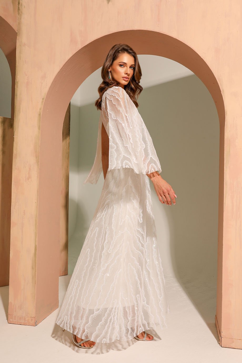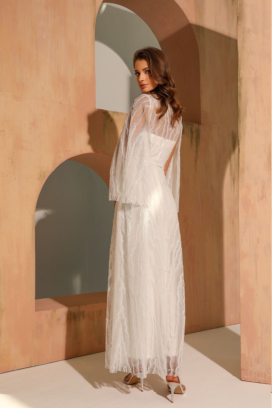 • Evening kaftan dress – v-neck, hot fixed stone, sequins/pearls fabric, short cape sleeves, evening length